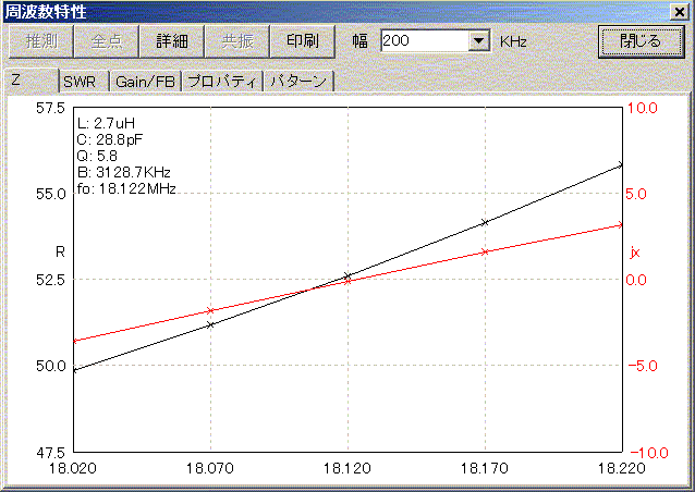 | このグラフはアンテナのインピーダンス特性図です。 |